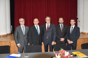 (Prof. Joaquim Mourato, Prof. Nuno Mangas (Presidente do CCISP); Prof. Albano Silva, Dr. Hugo Luís Pereira Hilário (Presidente do Conselho Geral do IP Portalegre; Prof. Luís Loures)